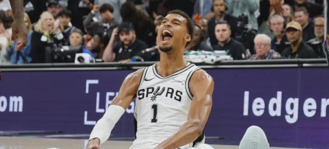 賽季前5場比賽,馬刺全部獲勝,文班亞馬場均貢獻30.2分14.6籃板3.4助攻1.4搶斷4.8封蓋,三項命中率分別是56.3%、31.3%和79.2%。